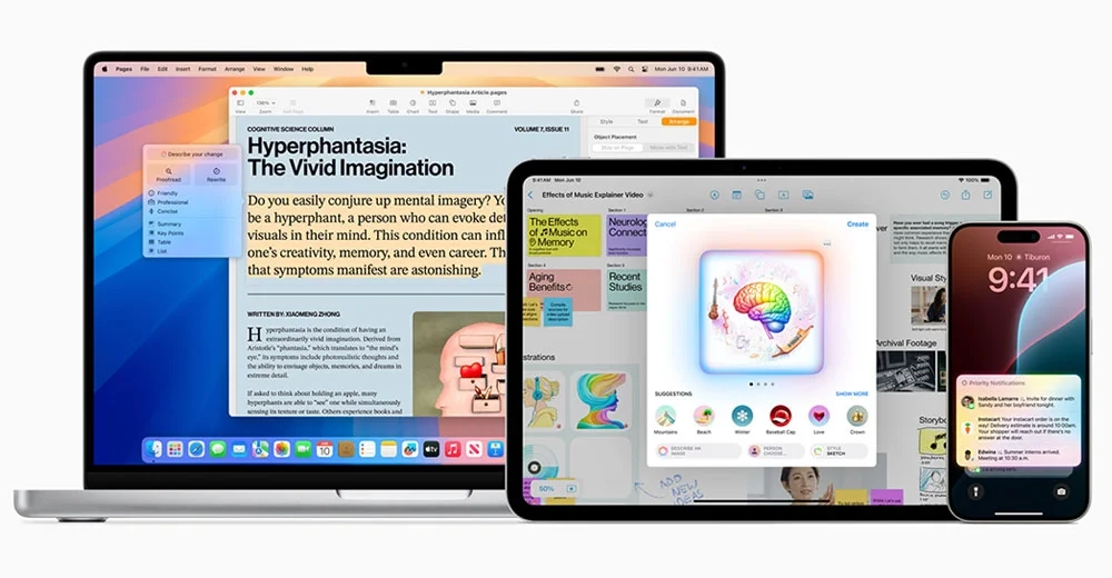 Wakil Presiden Rekayasa Perangkat Lunak Apple, Craig Federighi, menjelaskan bahwa sementara alat AI lain memiliki pengetahuan dunia yang luas, mereka kurang memahami kebutuhan spesifik pengguna. Apple Intelligence, yang terintegrasi dalam iOS 18, iPadOS 18, dan macOS Sequoia, bertujuan untuk memberikan pemahaman yang lebih personal. Kemampuannya mencakup pemahaman dan penciptaan bahasa serta gambar, serta menyederhanakan interaksi antarperangkat dan aplikasi. Fitur seperti prioritas notifikasi dan alat bantu penulisan untuk merangkai ulang, meringkas, dan memeriksa tata bahasa teks menjadi bagian dari inovasi ini.